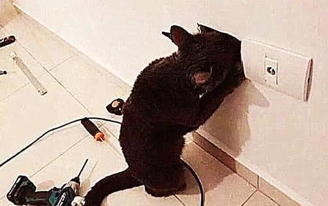 但是让铲屎官傻眼的事情还是发生了,趁着铲屎官去找插座的空隙,小黑猫竟然学着铲屎官的之前举动,偷偷地摆弄坏掉的插座。